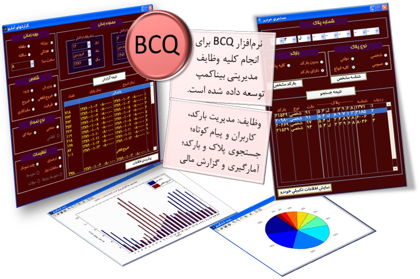 – » BCQ: این نرم افزار شامل رابط گرافیکی کاربر برای مشاهده و تغییر تنظیمات نرم افزارها و ارائه انواع گزارش های آماری و عملکردی می باشد.